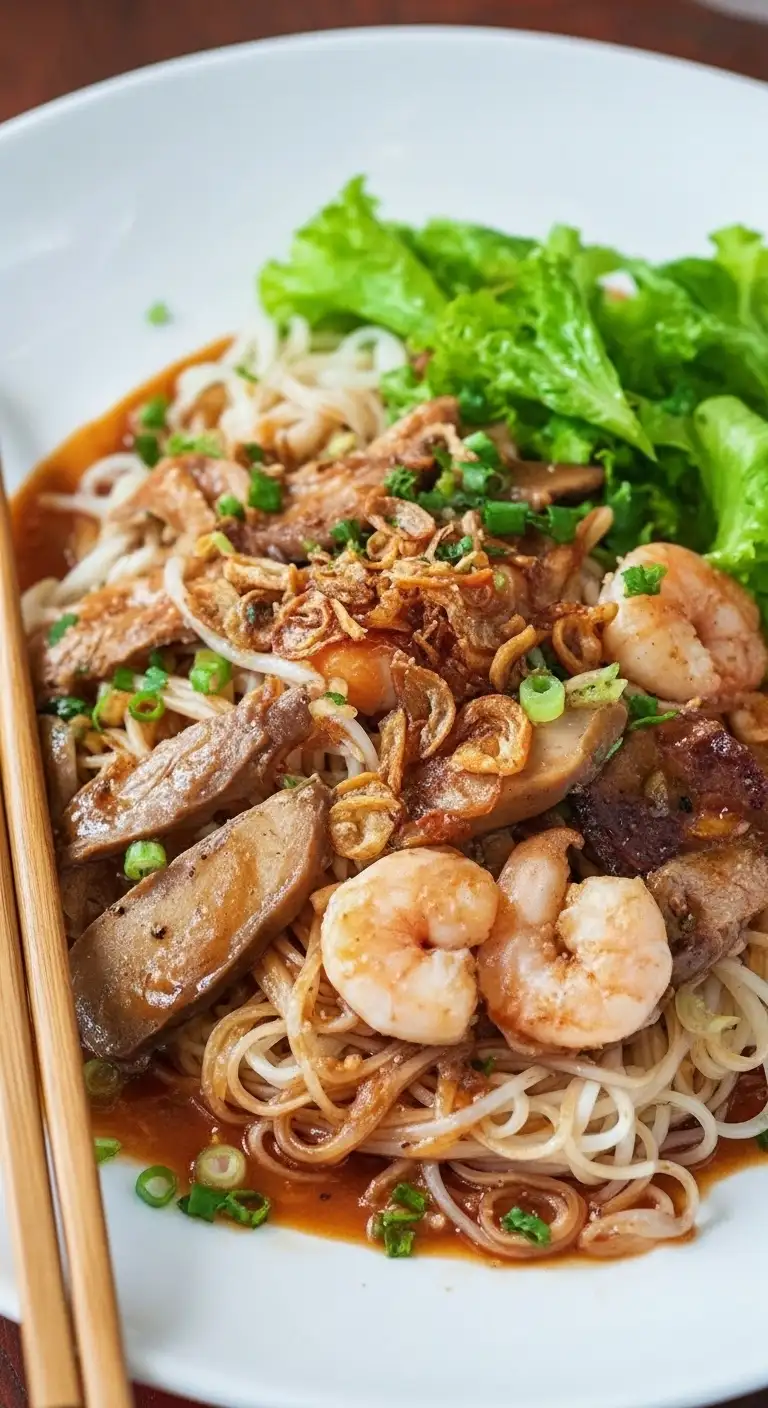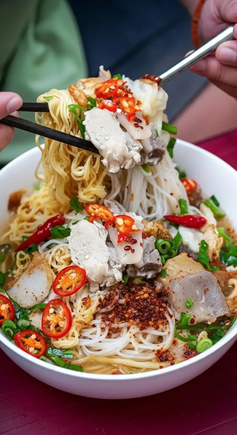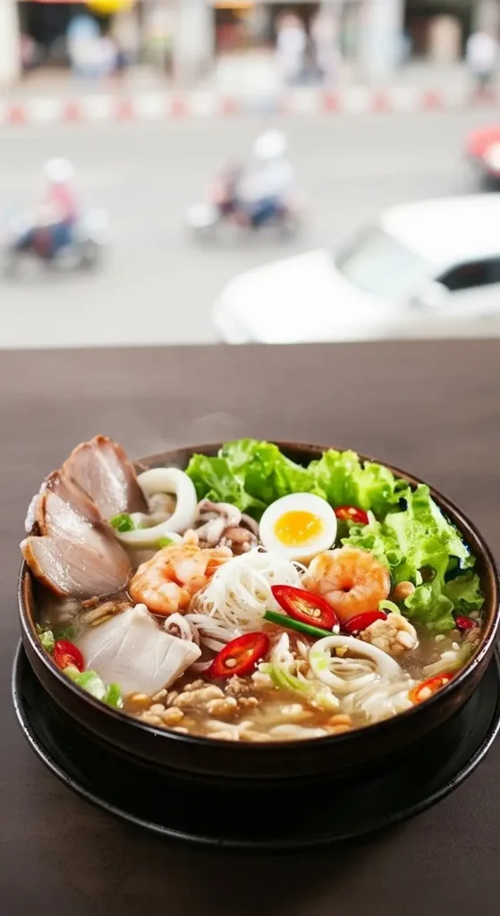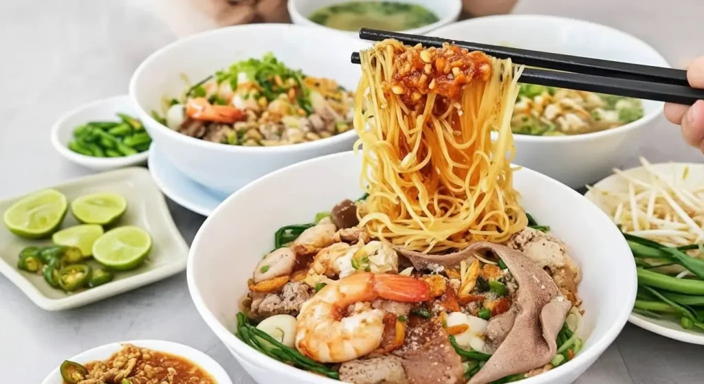 Hủ Tiếu (often pronounced “Hoo-Tiew”) is one of Southern Vietnam’s most celebrated and versatile noodle dishes. Unlike the Northern Phở, which is known for its beef-based broth and simplicity, Hủ Tiếu is a vibrant, flavorful noodle soup heavily influenced by Chinese (Teochew) and Cambodian culinary traditions, making it a distinct culinary experience. It is a staple from breakfast to late-night street food across Ho Chi Minh City and the Mekong Delta.