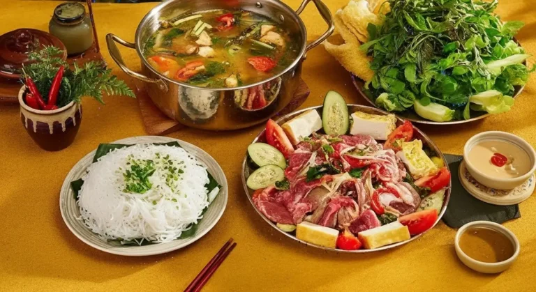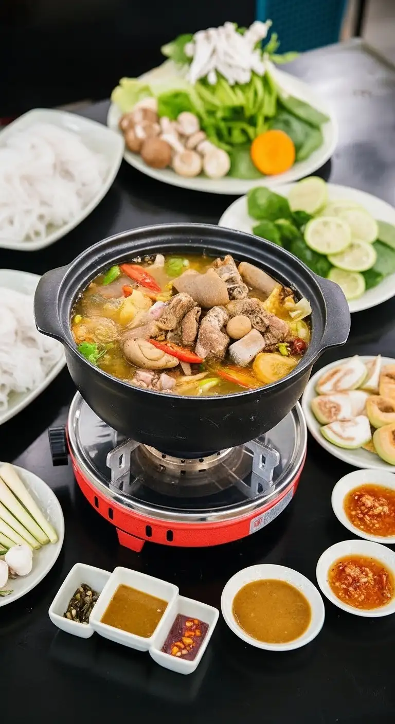 | North (Hanoi) | Milder, Balanced, Herbal. Broth is often clearer and more focused on the deep, natural flavor of the meat and traditional herbs (thuốc bắc). Less emphasis on sweetness. | Tương (Fermented Soybean Paste), or Ginger Fish Sauce. | Often consumed in winter for warmth. The Lẩu Dê Thuốc Bắc style is quite popular. |