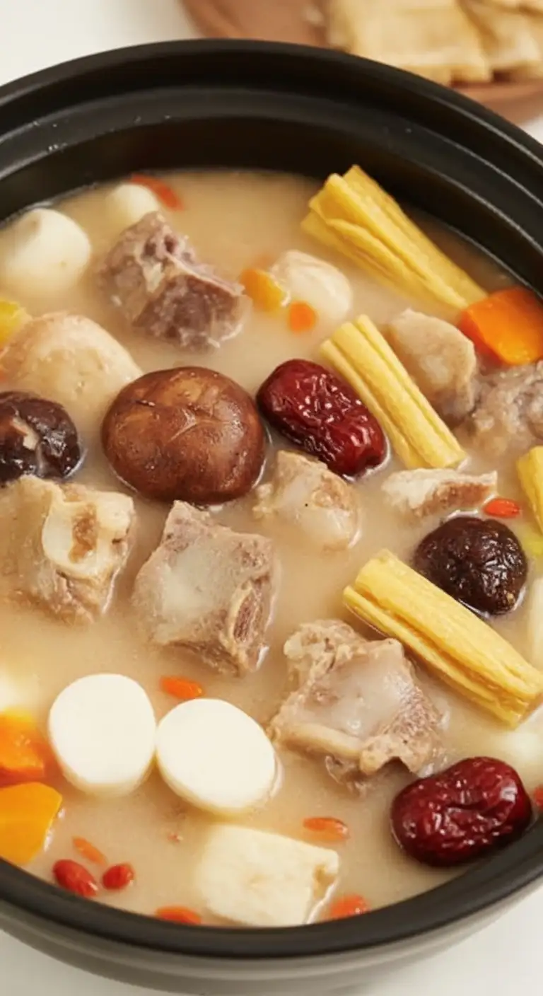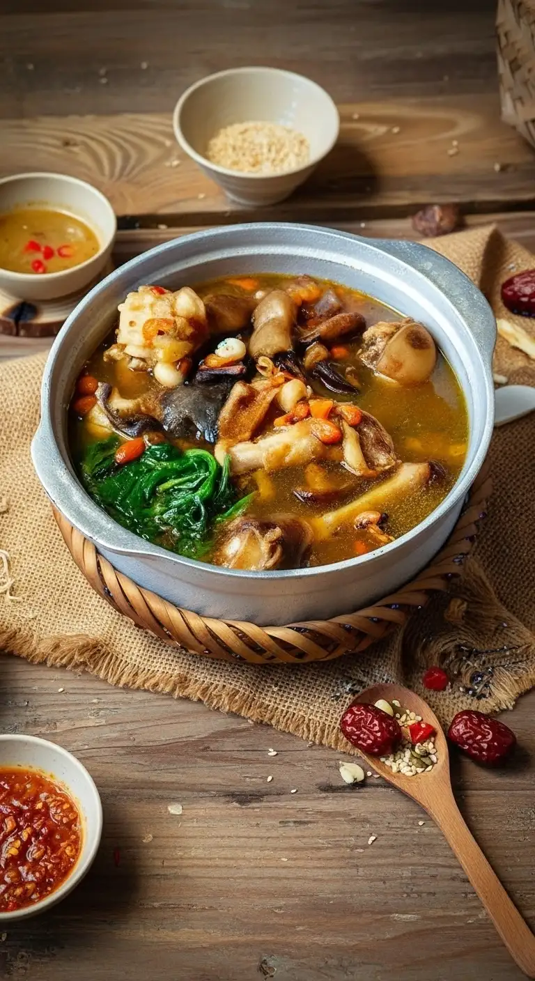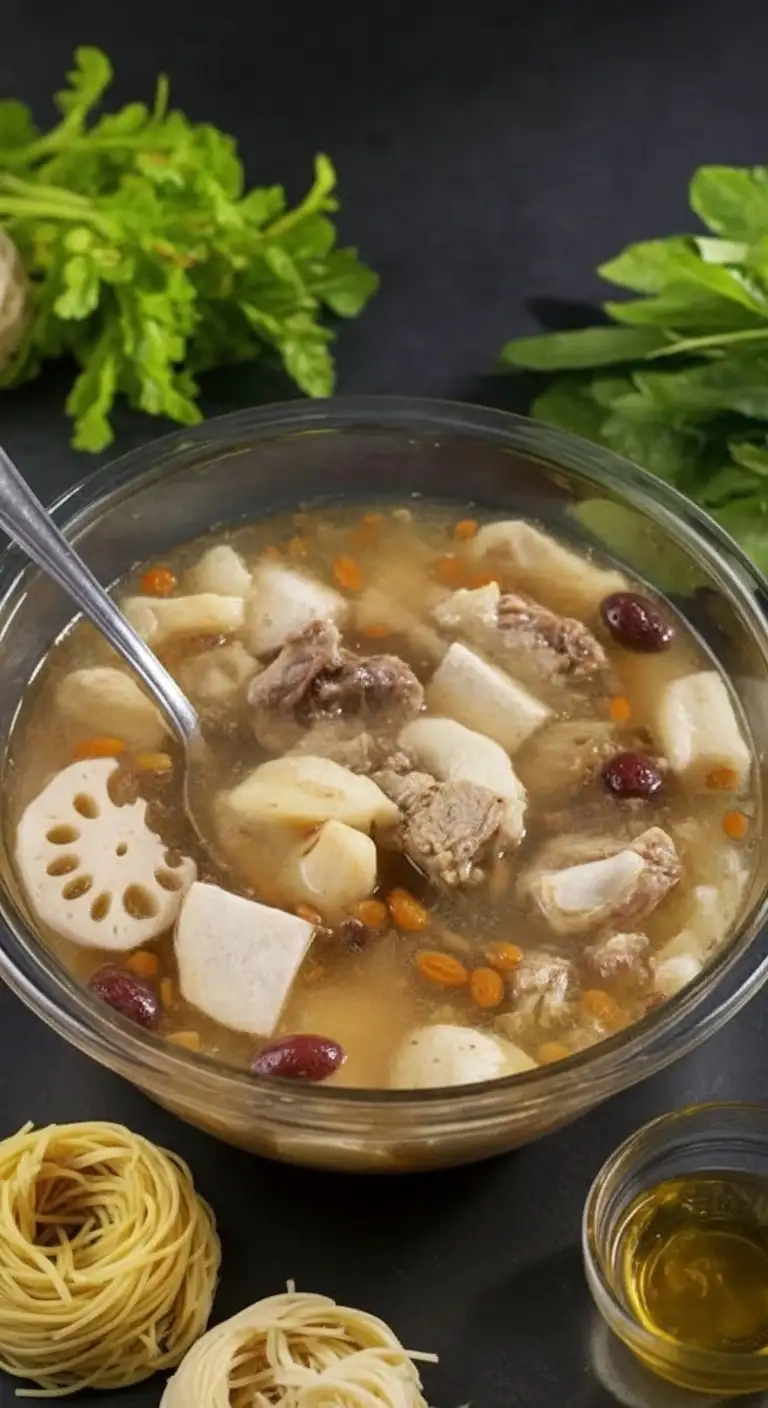 The broth is the star. It’s typically slow-simmered with Chinese medicinal herbs, lotus root, jujubes, ginger, galangal, and star anise. This lengthy process tenderizes the goat and removes any gaminess, resulting in a savory, slightly sweet, and deeply fragrant soup.