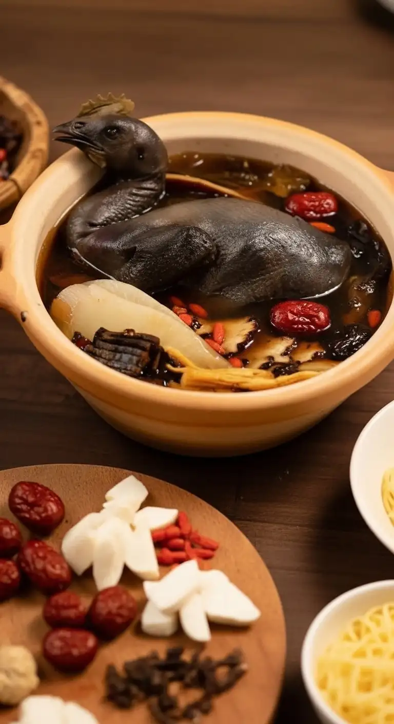 A restorative dish where the chicken is simmered in a complex, dark broth filled with Chinese medicinal herbs (thuốc bắc) such as jujubes, goji berries, and astragalus. It is highly valued for its warming and health-boosting properties, particularly in the North.