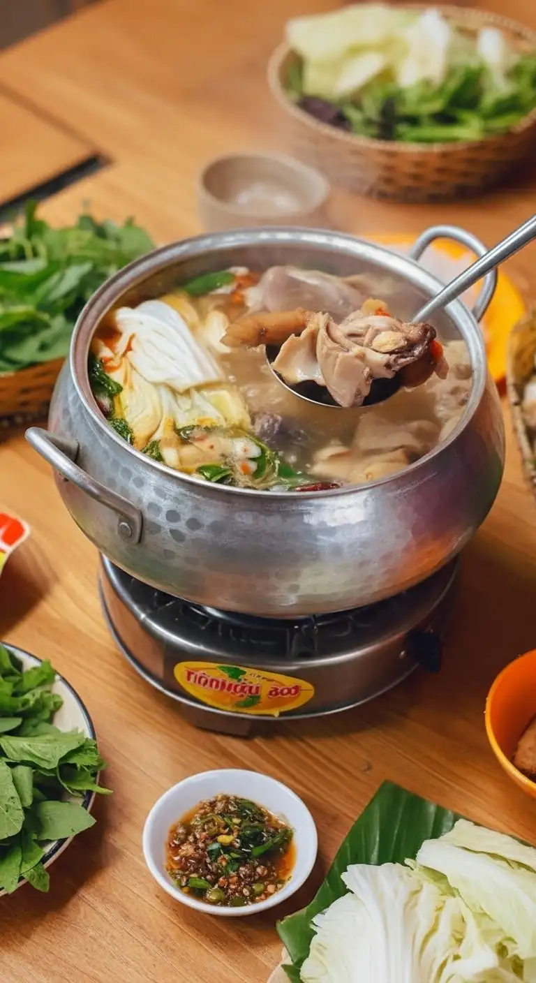 | North (Hanoi) | Subtle, Harmonious, Herbal. Focuses on traditional, clean flavors without excessive sweetness or spiciness. | Lẩu Gà Thuốc Bắc (Herbal) or Lẩu Gà Tần (Slow-cooked chicken with herbs). | Broth is light and clear; emphasis is on therapeutic, warming herbs, often eaten during colder months. Dipping sauces are simple, usually salt-lime-chili. |
