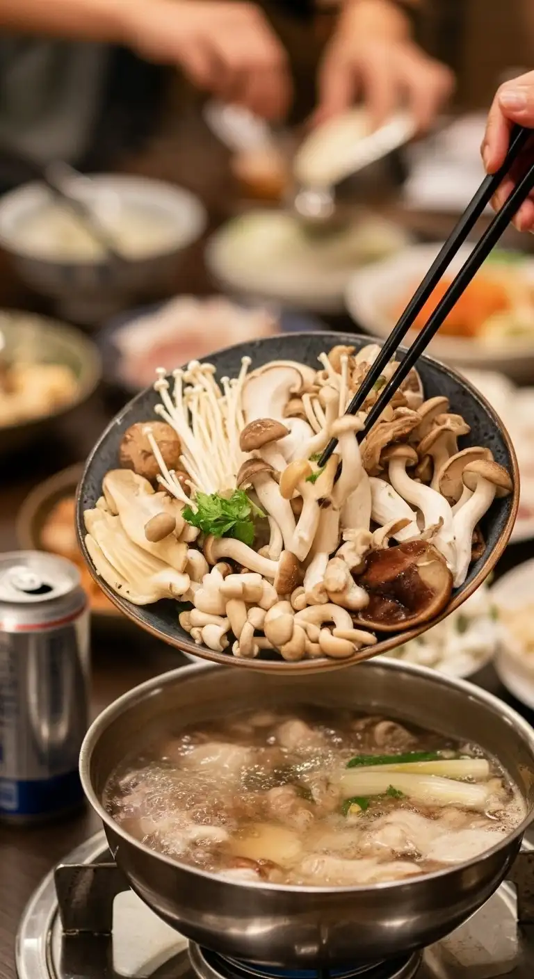 Broth First: Unlike some aggressive hot pots, with Lẩu Nấm, it is recommended to taste the initial broth on its own. It is a light, restorative soup.