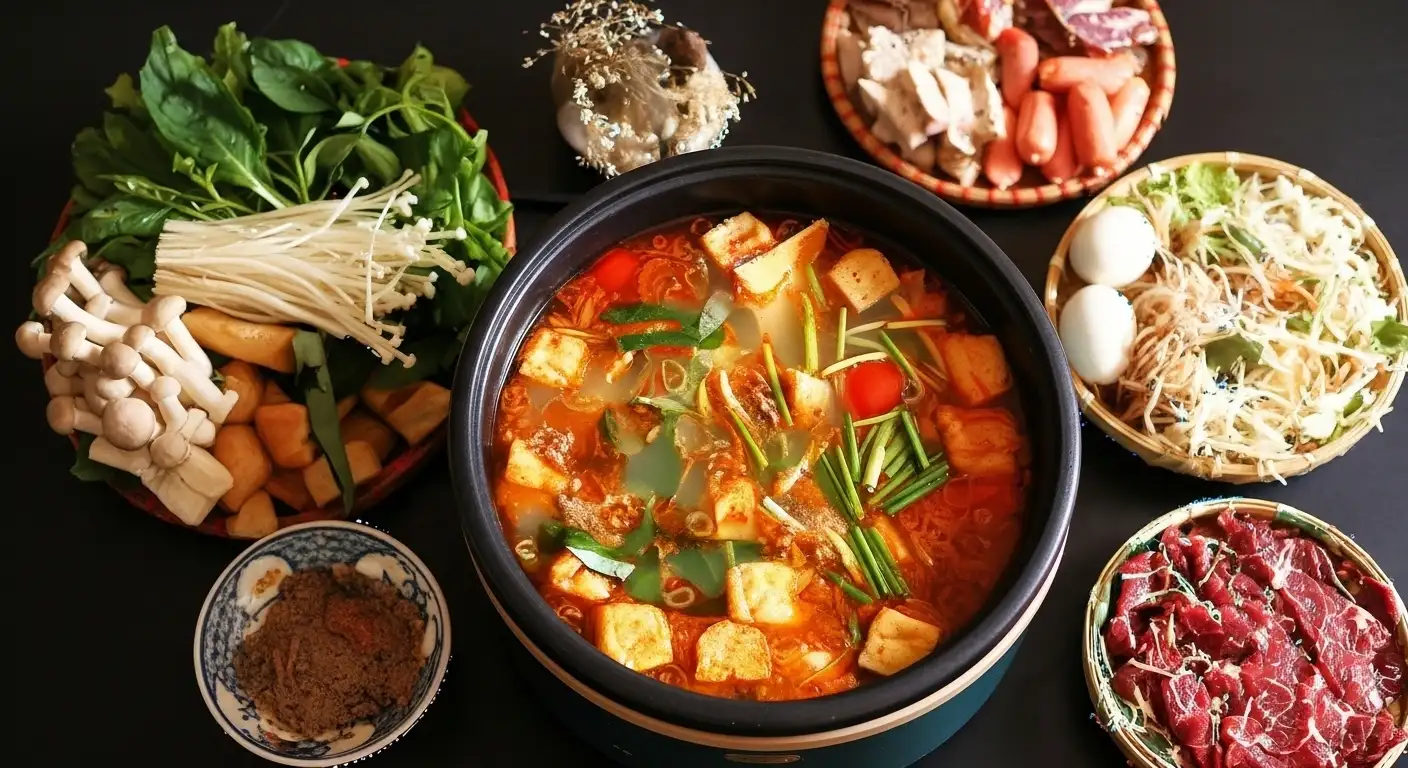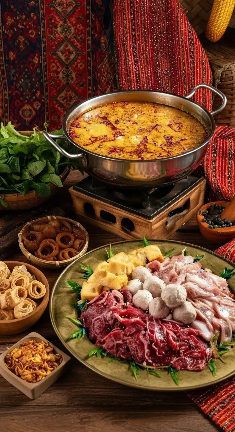 Cook the Proteins: Thinly sliced beef is added to the boiling broth in small batches. It should be swished briefly (about 15–30 seconds) until just cooked to maintain tenderness, then removed.