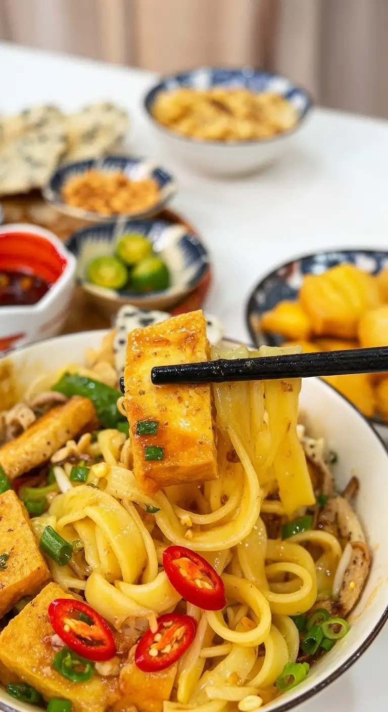 | Mì Quảng Chay | Vegetarian Mì Quảng | Tofu, Mushrooms, Vegetables | A meatless version for vegetarians. |