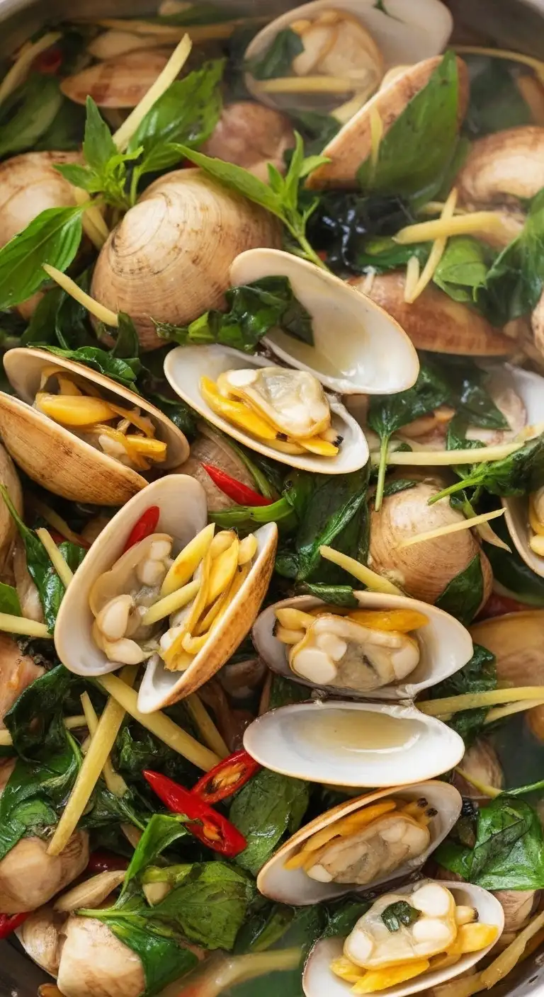| Nghêu Hấp Sả | Clams or cockles steamed in a broth of lemongrass, ginger, and chili. | Clean, fresh, spicy, and savory. The broth is often consumed. |