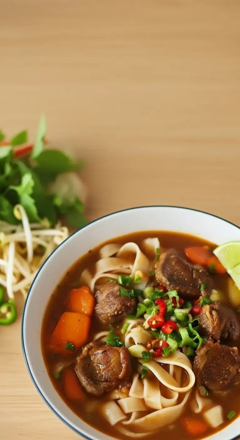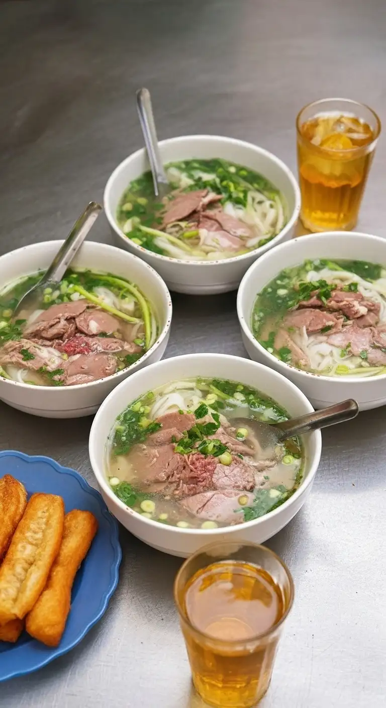 Central Vietnam Phở: While the Central region is more famous for other noodle soups like Bún Bò Huế (Spicy Beef Noodle Soup), Phở here often acts as a bridge between the two styles. The broth can be clearer than in the South but often incorporates a slight sweetness and is served with a moderate selection of herbs and condiments, reflecting the region’s diverse and spicy culinary traditions.