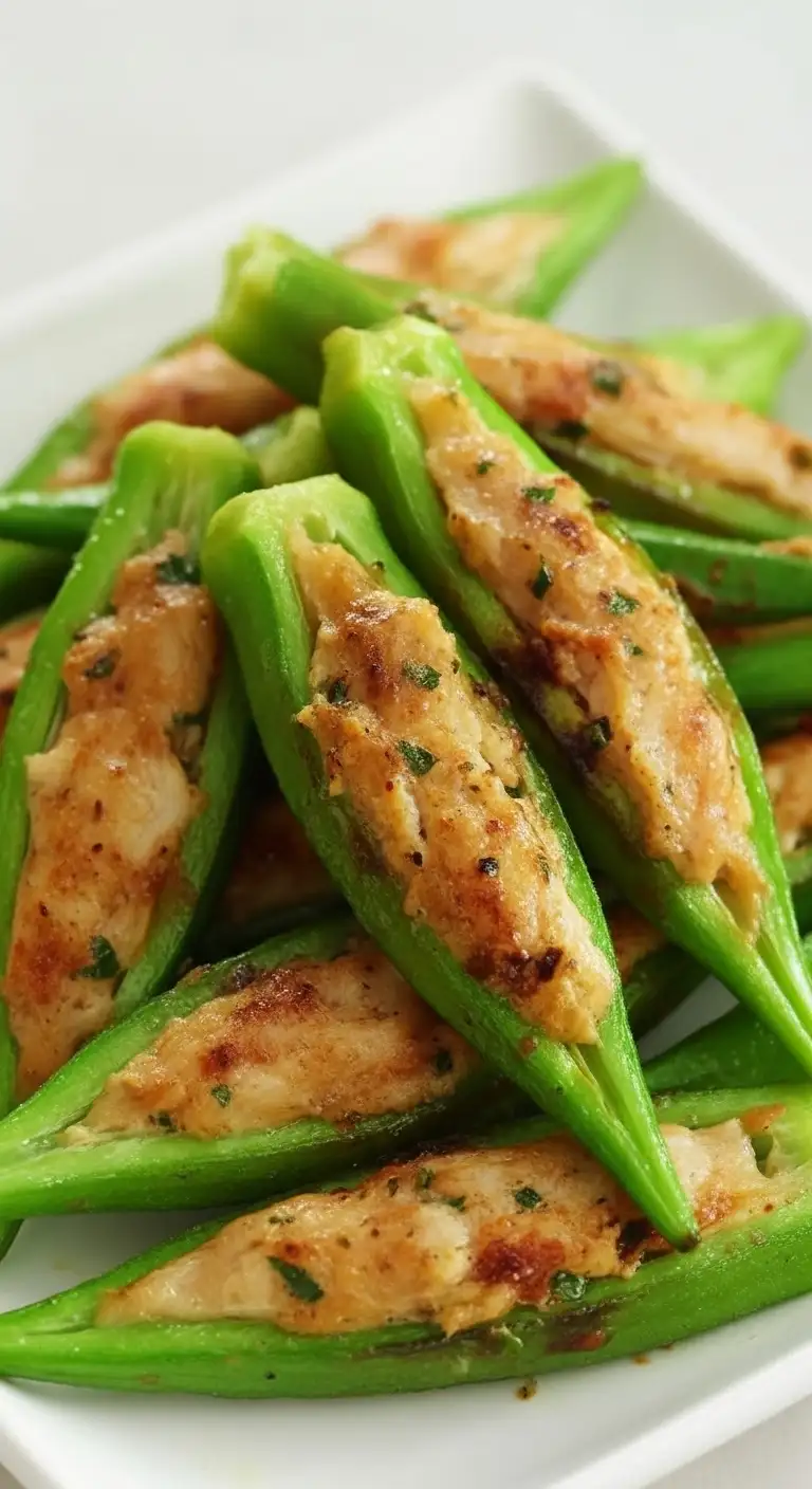 Okra is lightly seasoned and grilled until tender-crisp. It’s valued for its unique texture and is often paired with a spicy chili-salt dip.