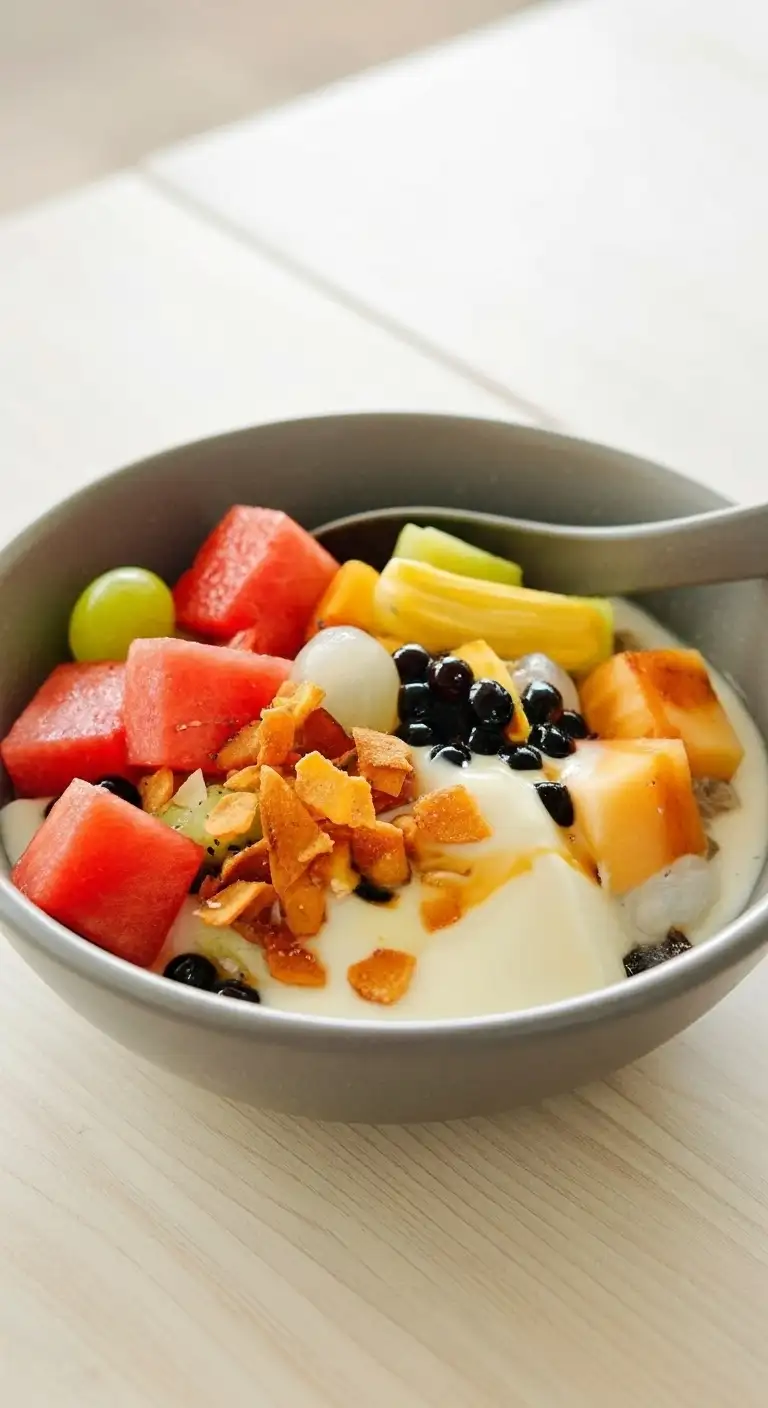 | South (Saigon/Mekong Delta) | Wide Variety of Tropical Fruits: Due to the warm climate, the South has the most abundant and diverse supply of tropical fruits (durian, mangosteen, rambutan, etc.). | Sweet and Creamy: Southern cuisine generally favors sweeter profiles, so the Trái Cây Dầm here is often richer, with a more generous amount of condensed milk and heavy use of coconut milk/cream. |