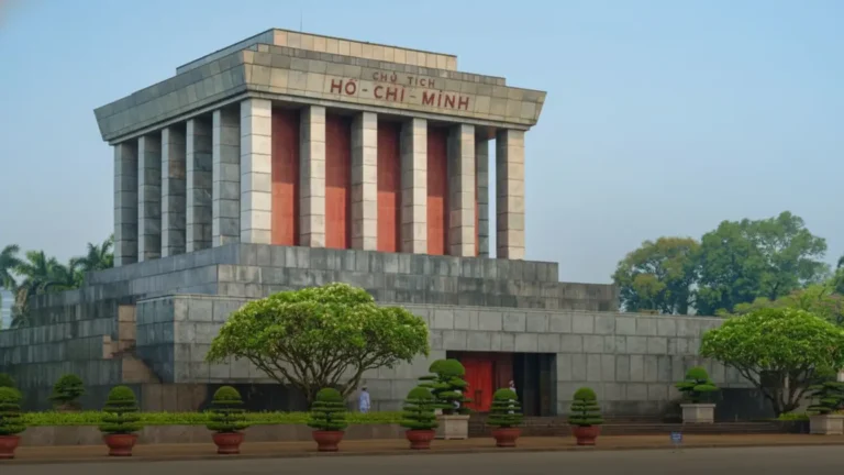 The Ho Chi Minh Mausoleum is the final resting place of Vietnam’s revolutionary leader, Ho Chi Minh. This massive, grey stone structure stands in solemn contrast to the lively city around it.